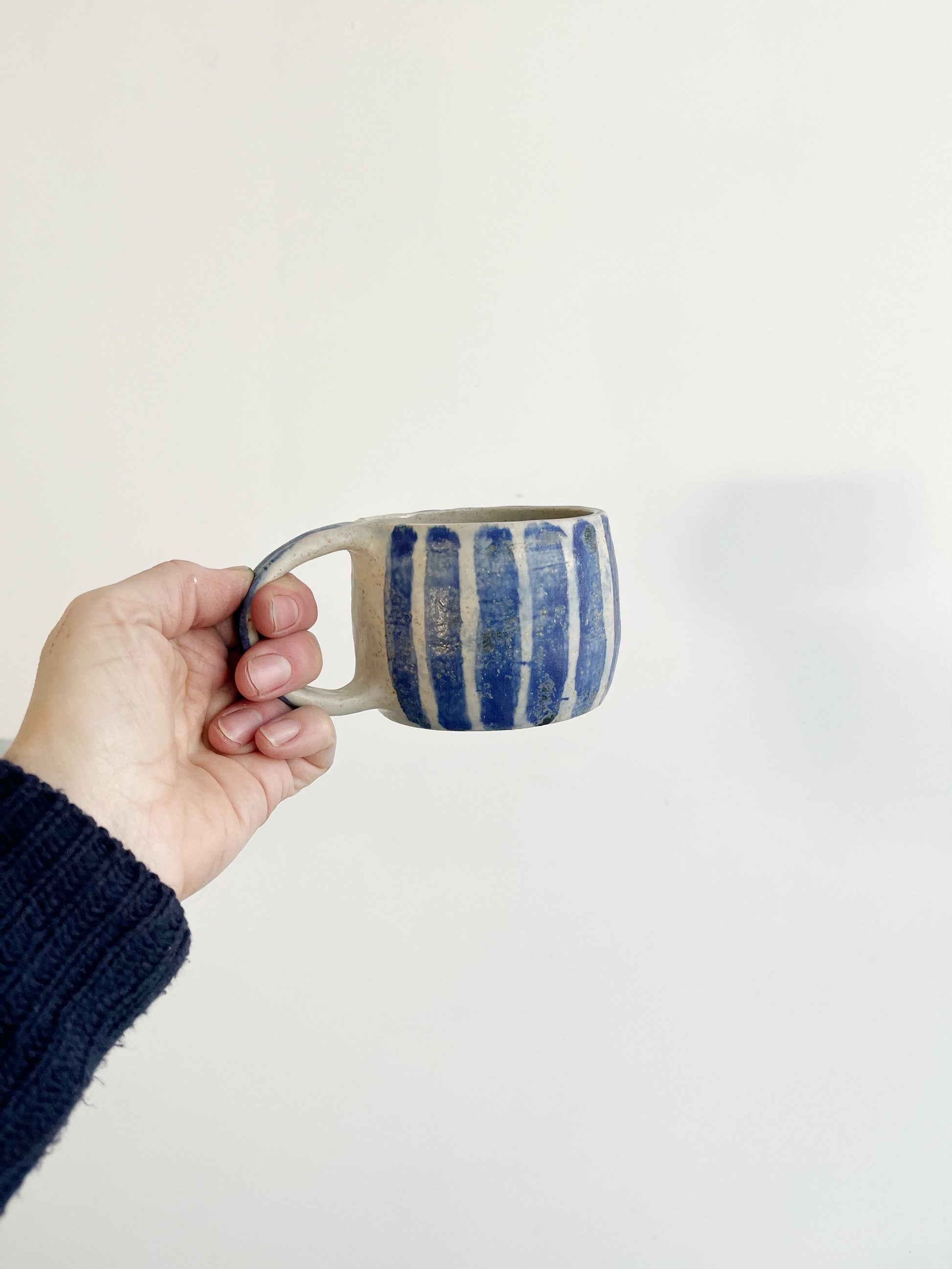 Handmade Ceramic Coffee Cup: Blue Striped Stoneware Mug